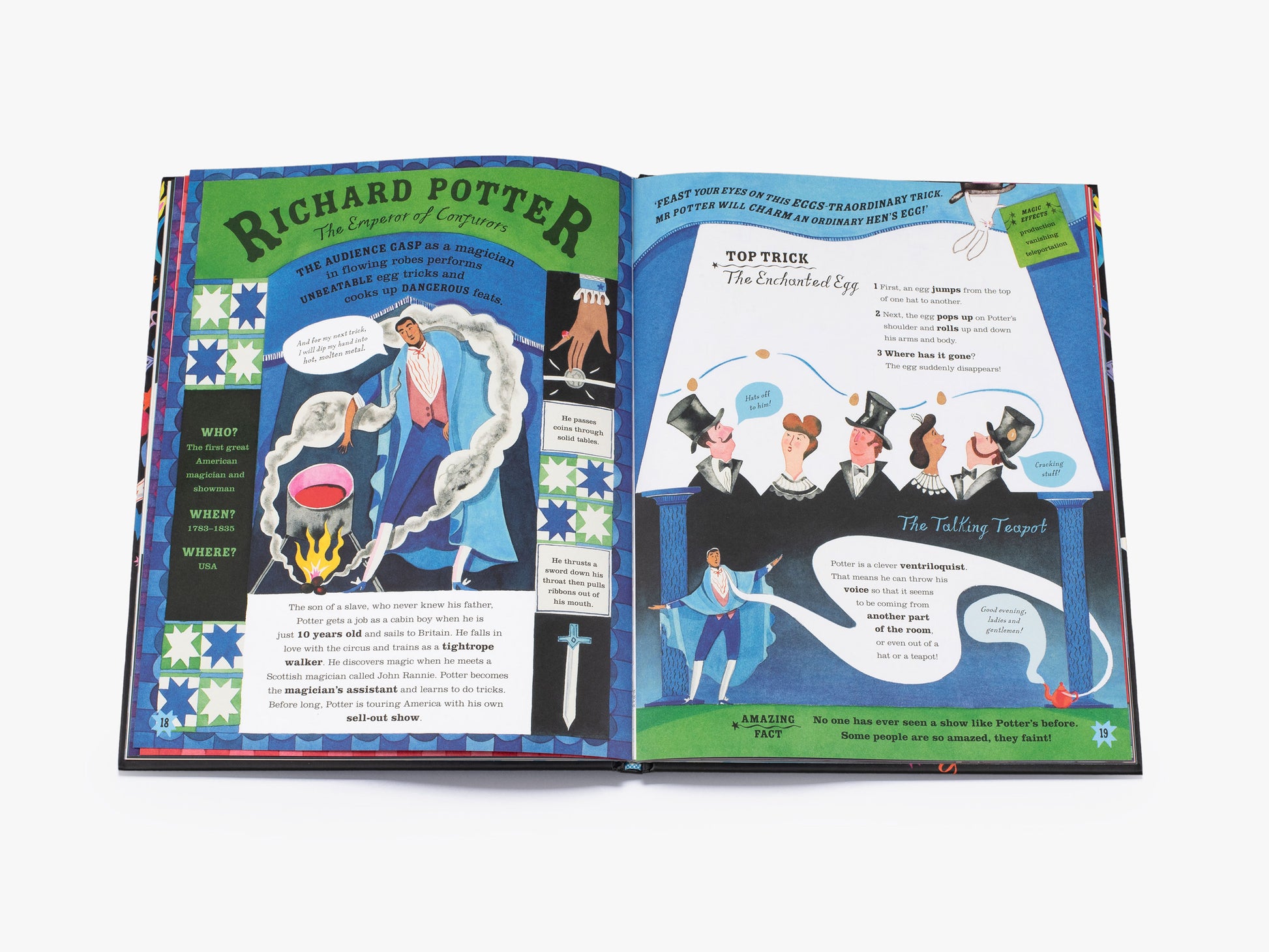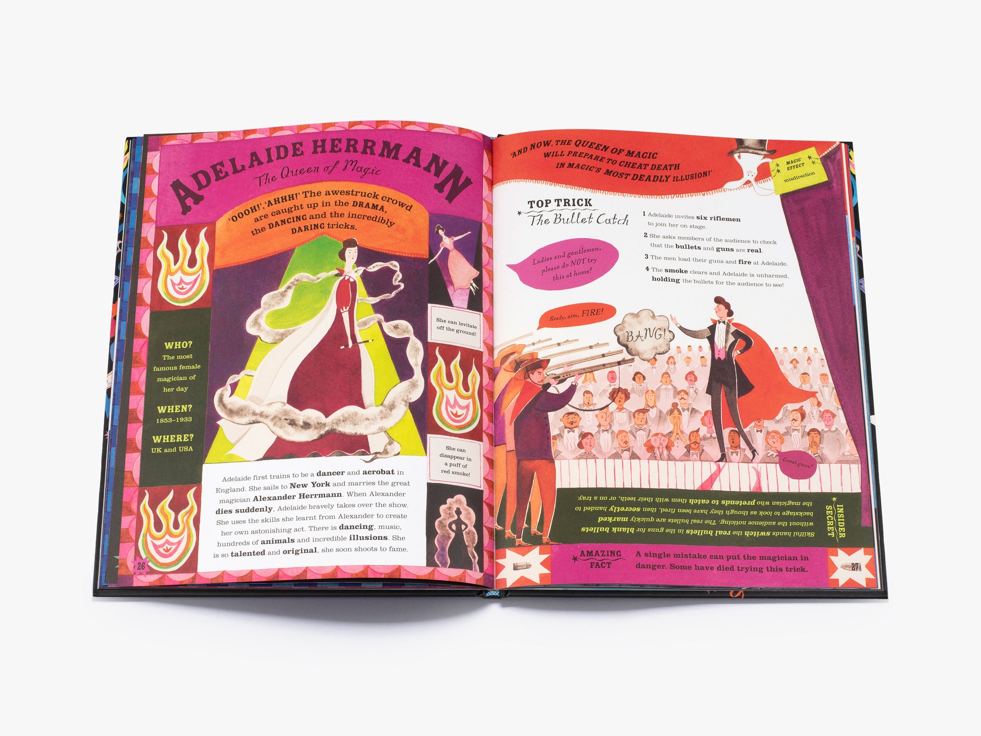 Sensational facts about eight master magicians practically levitate off the page in this enchanting collection. Experience the thrill of sword-eating, the mystery of the disappearing duck, and one incredible illusionist who can snatch bullets out of midair! No magician will ever reveal her secrets, but you may just learn how a few pulled off their most famous tricks…