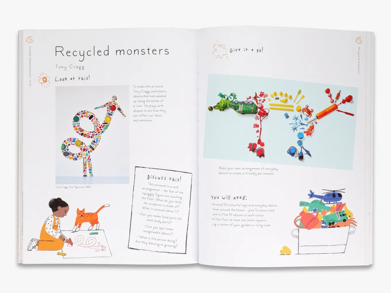 Each project requires minimal set-up so the maximum amount of time is spent creating together, and the step-by-step instructions show photographs of the projects in progress so they can be followed at a glance. The projects use simple materials, from clay to ink to paint. Being grounded in art history, Mini Artists features a range of interesting art techniques that are ideal for teaching new motor skills.