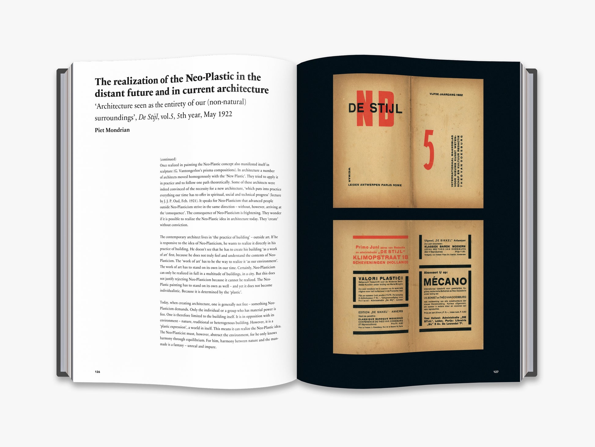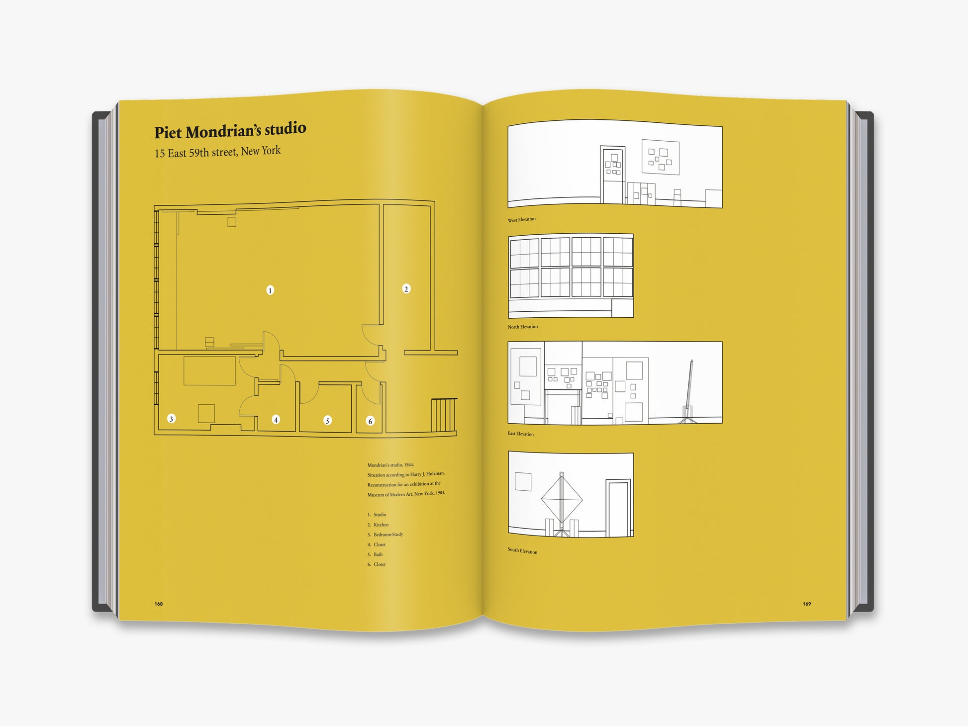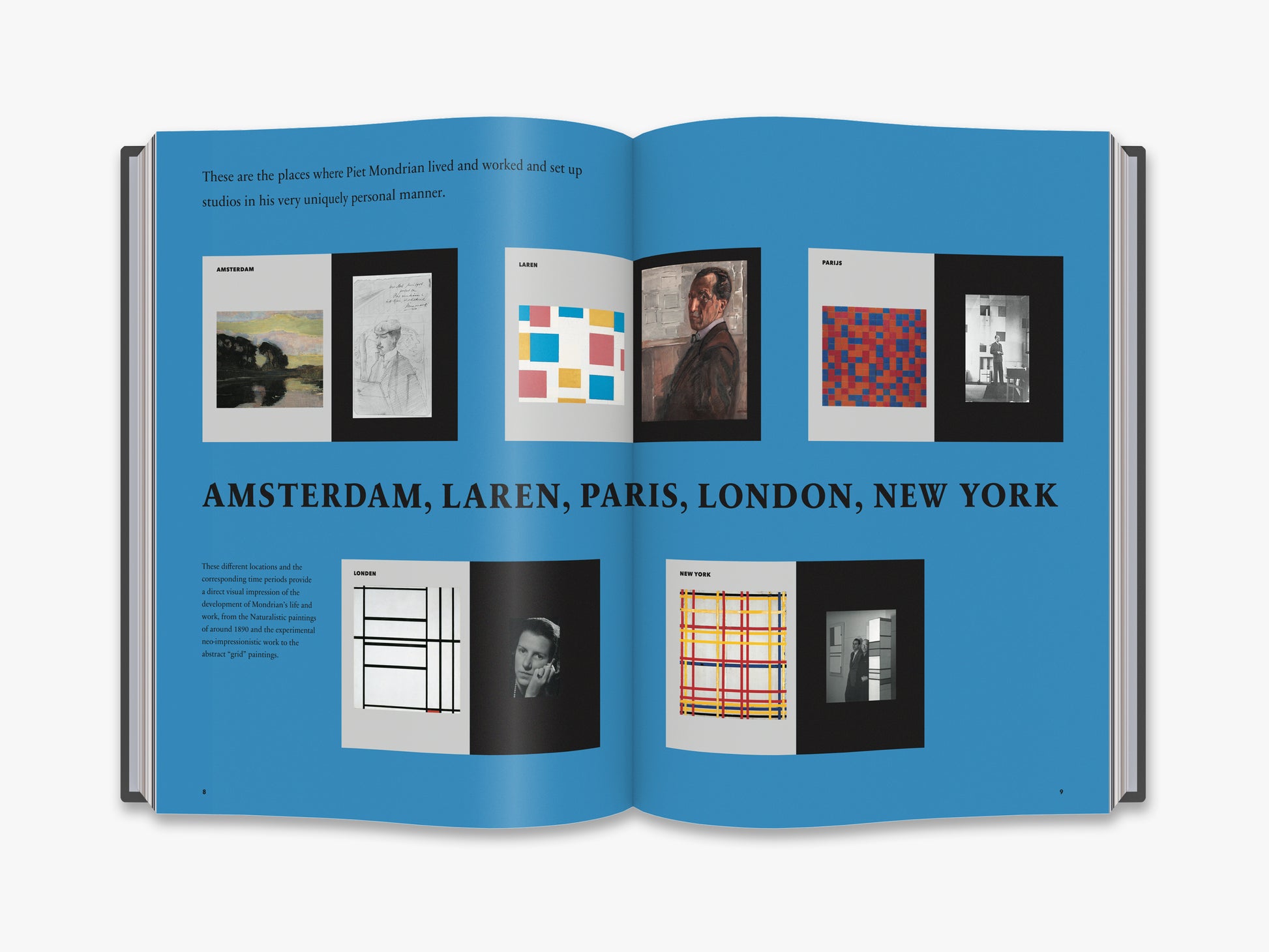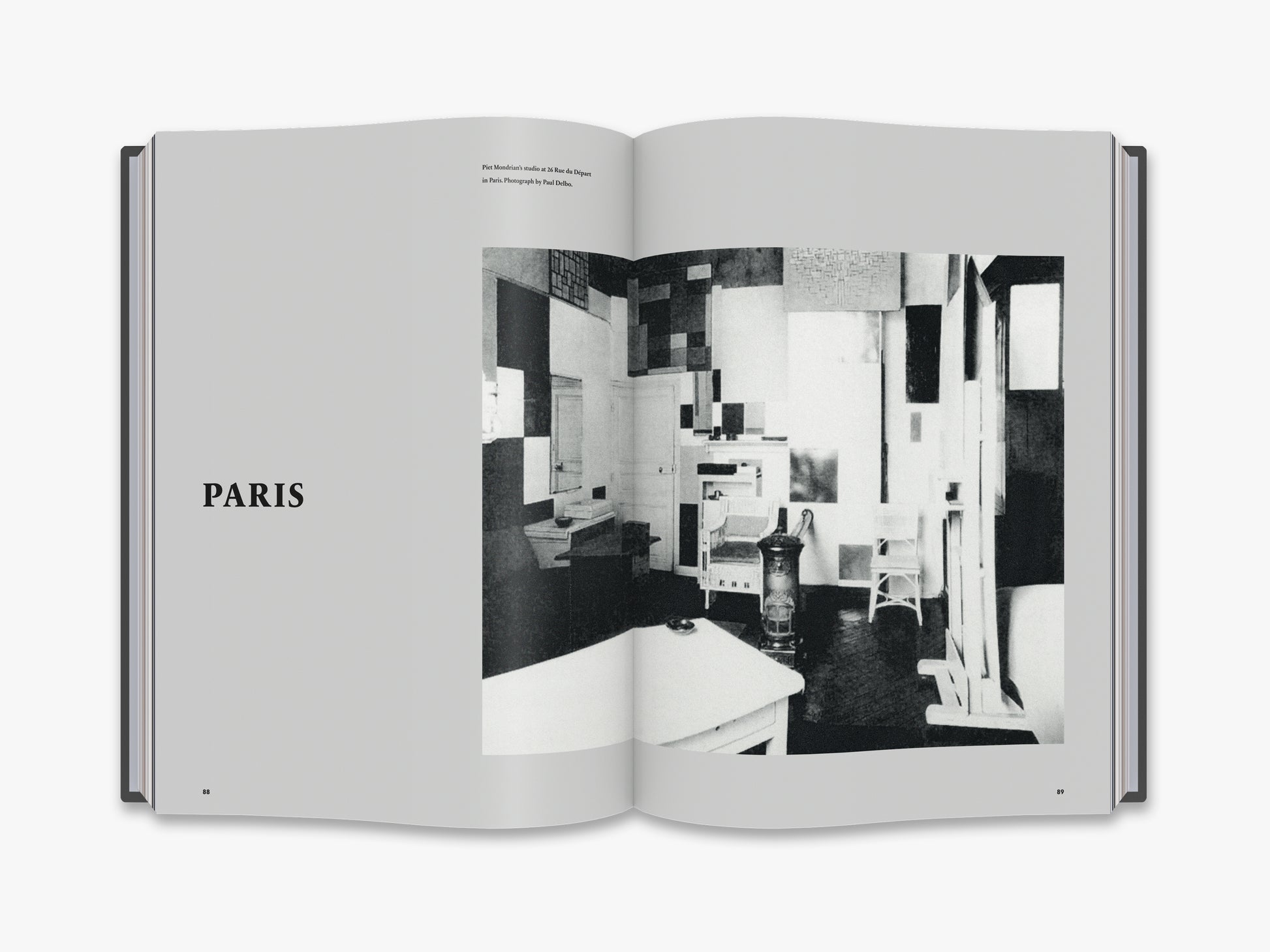 ‘A visual journey along the studios of Piet Mondrian/Amsterdam, Laren, Paris, London, New York’, Cees W. de Jong • ‘From bohemian brown to stylish black and white/ The studios in Amsterdam’, Marty Bax • ‘The great struggle/The studios in Laren’, Martijn F. le Coultre • ‘Artistic and philosophic connections/Long lines and varying contacts’, Marty Bax • ‘Place of free spirit/Fruitful meetings’, Marjory Degen • ‘“As soon as you stepped inside you were in paradise”/The studio in Paris’, Ingelies Vermeulen • ‘The new plasticism in the art of painting/IV. Plastic and composition, De Stijl, No. X, 1th year 1917, Piet Mondriaan • ‘The realization of neo-plasticism in the distant future and in today’s architecture/De Stijl, No. 5, 5th year May 1922’, P. Mondrian • ‘10 years of style/De Stijl, No. 79-84, Jubilee-series (XIV). 1927.’, P. Mondrian • ‘Neo - Plasticisme. The Home- The Street - The City/i10 Amsterdam 1927, Piet Mondriaan • ‘Color planes climbing up the walls/The studio in London’, Marty Bax • ‘Like a walk in one of Mondriaan’s paintings”/The last studios in New York’, Ingelies Vermeulen • ‘All that Jazz/Victory Boogie Woogie