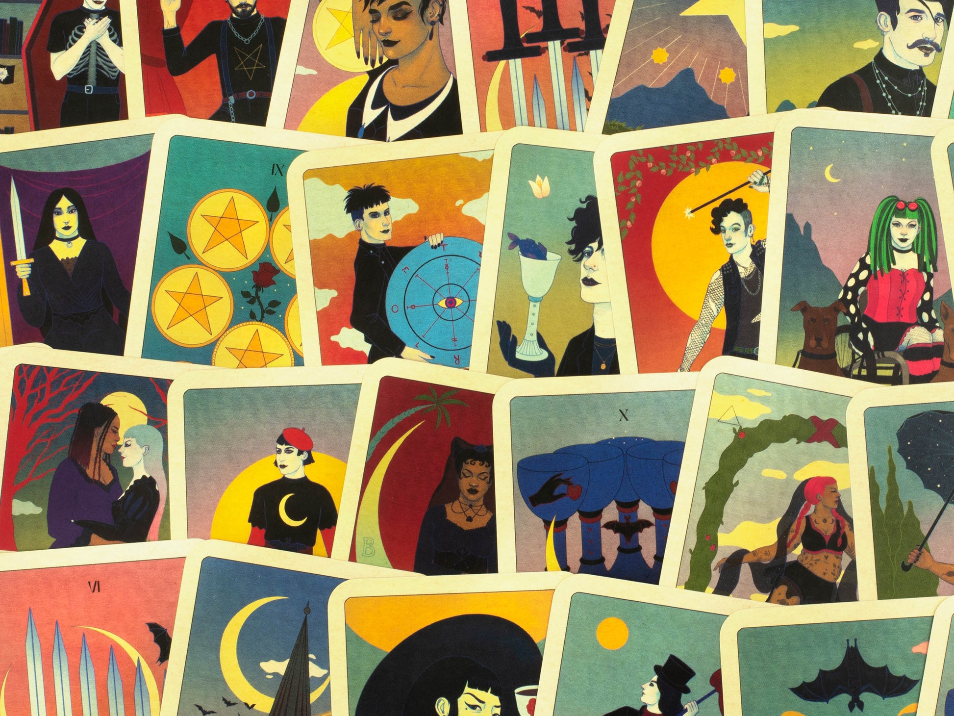 Are you ready to journey towards self-knowledge and a more profound understanding of your place in the world? Combining traditional tarot iconography with a unique goth aesthetic, this set of 78 cards works as a fully functioning tarot deck (accompanied by a 40-page guidebook).